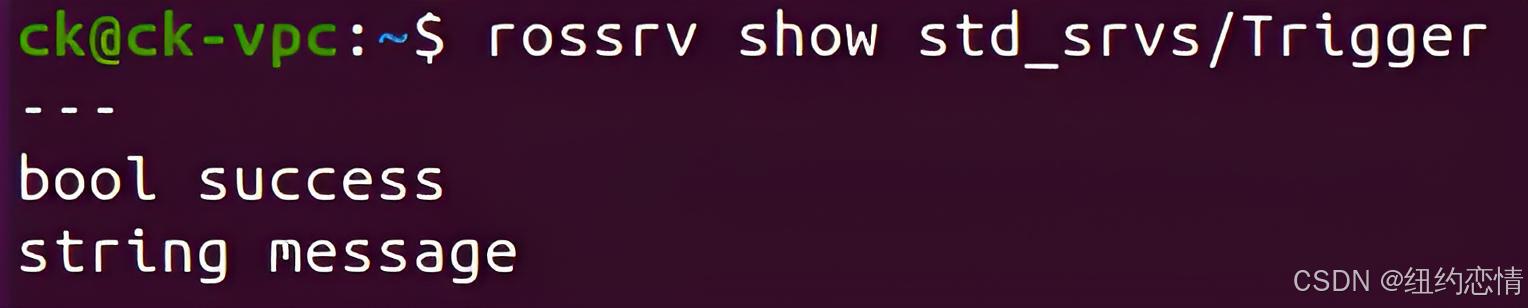 其中在回调函数中给Client端的反馈数据res是与Trigger相对应的,我们可以查看一下Trigger的数据结构。可以使用rossrv指令查看service中的数据类型: