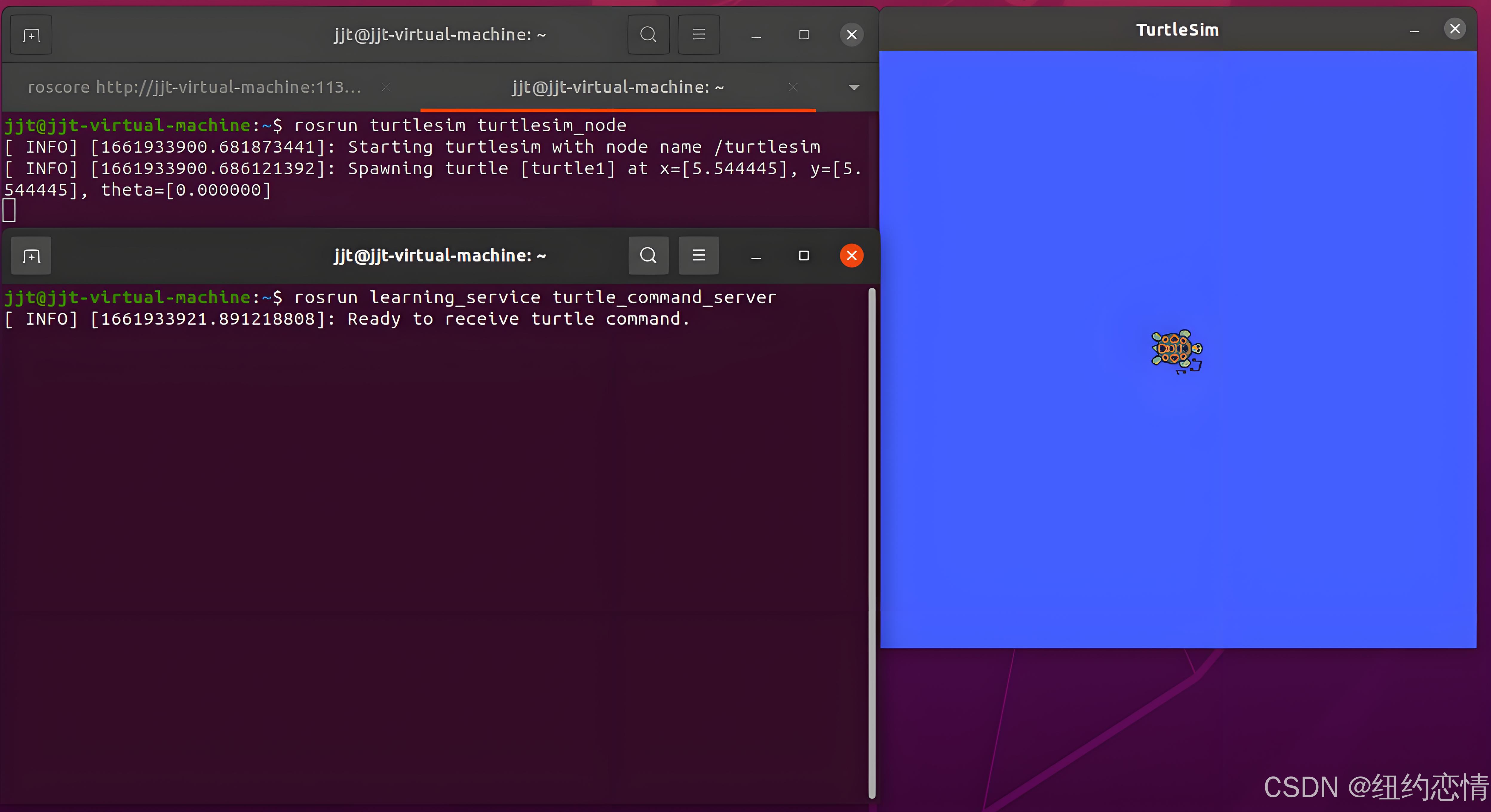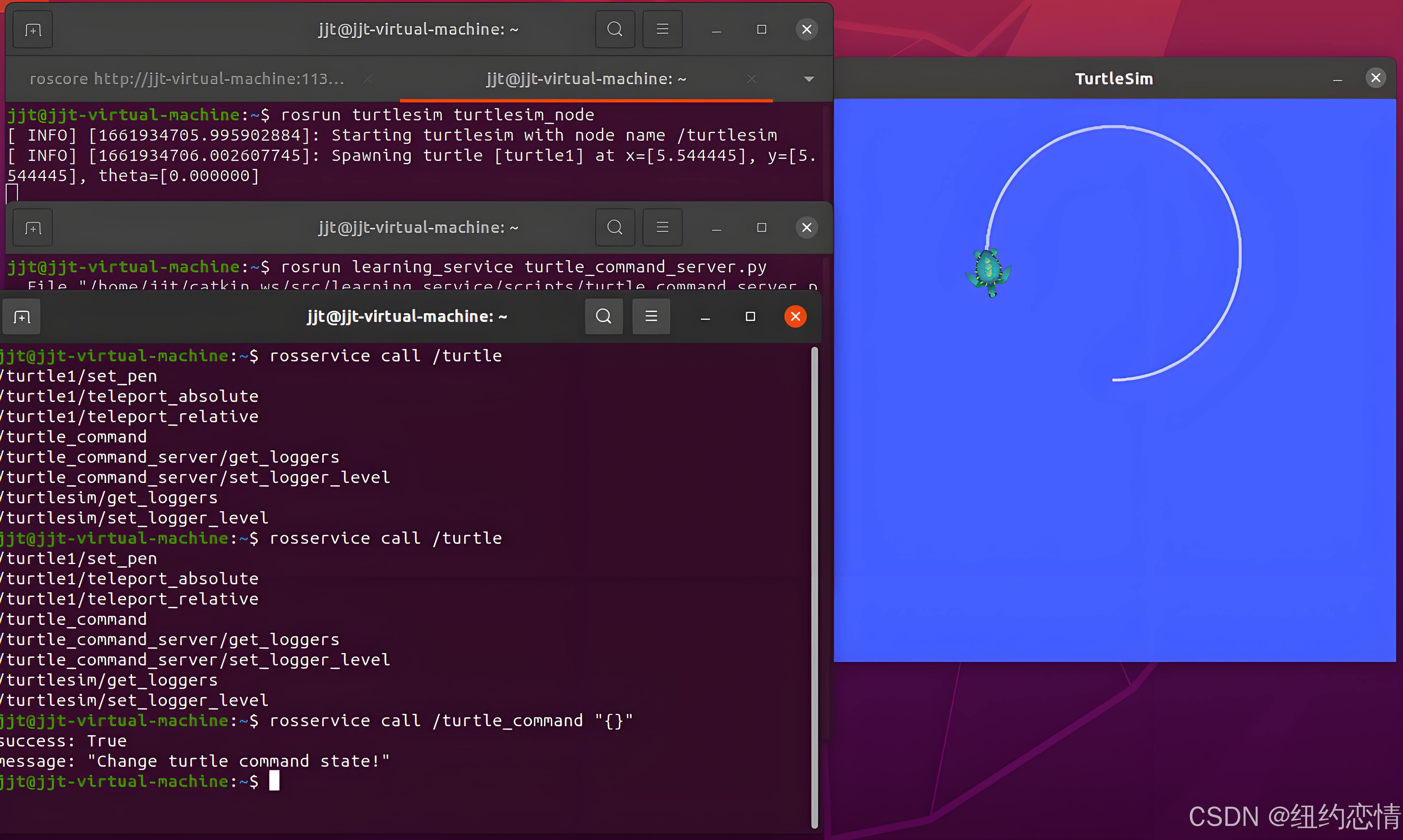 接着我们使用rosservice call ...请求海龟动起来,再打开一个终端。