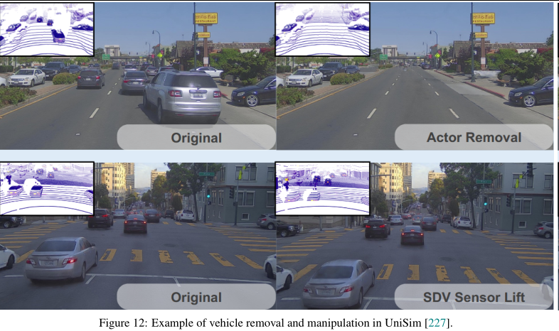 | UniSim | NeRF | ✓ | ✓ | ✓ | ✓ | ✓ | N/A |