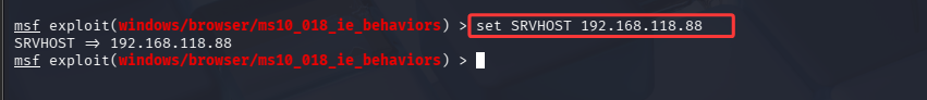 set SRVHOST 192.168.118.88