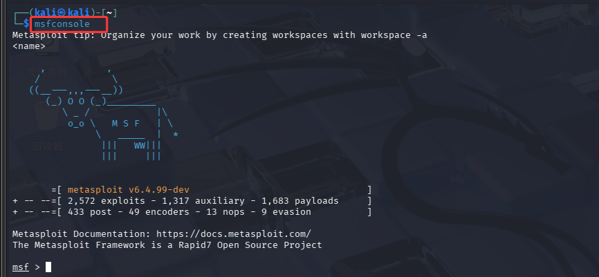 启动 Metasploit 打开终端,执行: