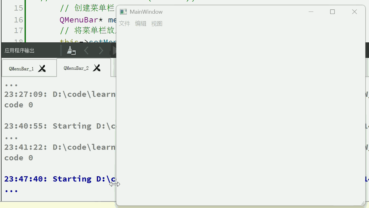 菜单栏的创建可以借助于 QMainWindow类 提供的 menuBar() 函数来实现。menubar()函数原型如下: