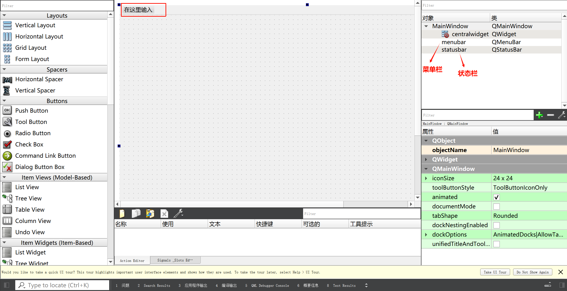 项目创建好之后,双击ui文件,可以看到和之前Qwidget的不同