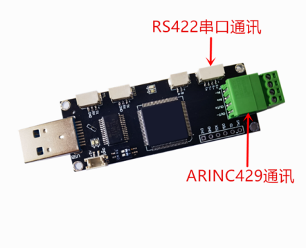 注:RS422为四线制,RS422与ARINC429通讯时,可用USB为其供电,或使用外部5V供电。