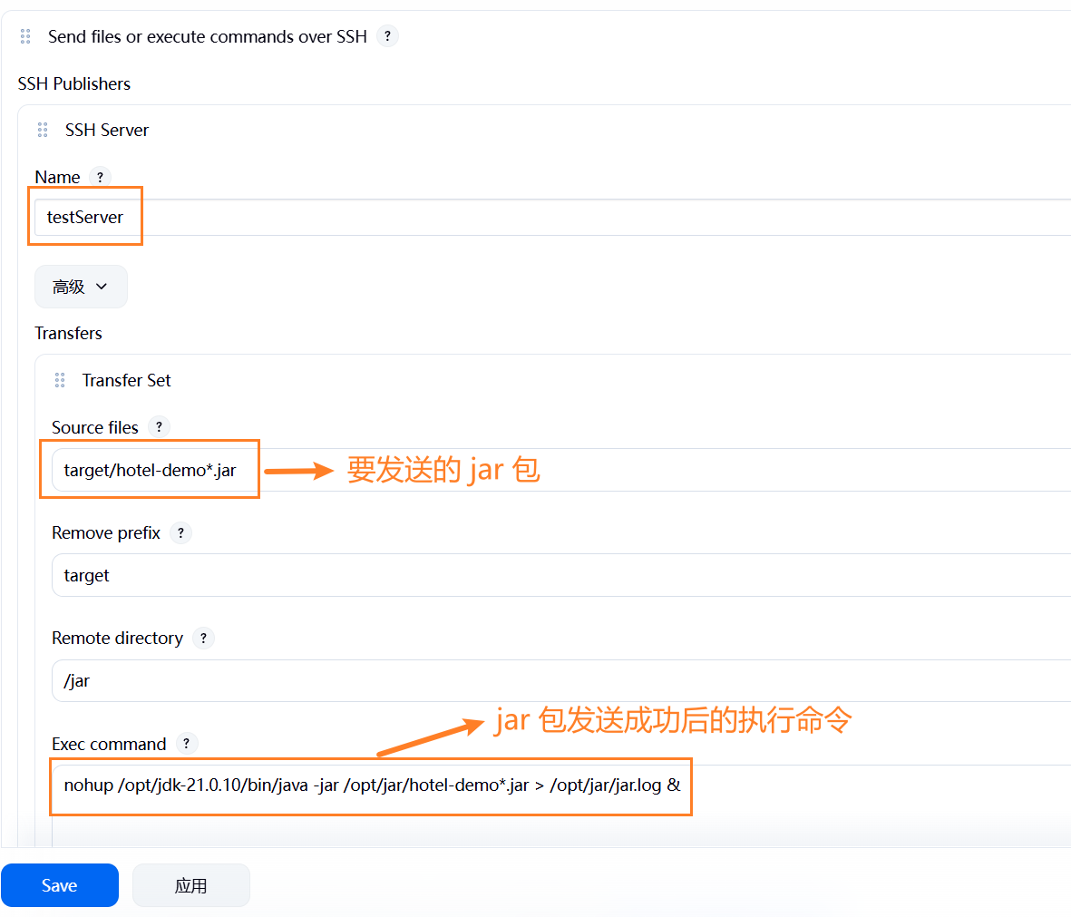 (2)这样一来,当多次构建时,不用手动 kill 之前启动的项目。当然如果要是这个过程更加严谨,可以等 jar 包发送成功之后,再执行停止旧进程、启动新应用的命令。这样可以防止先停止旧进程之后,jar 包但发送失败的情况。