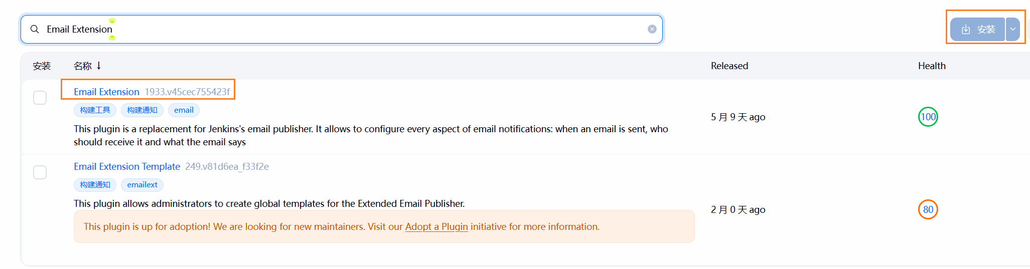 (2)安装插件 Email Extension: