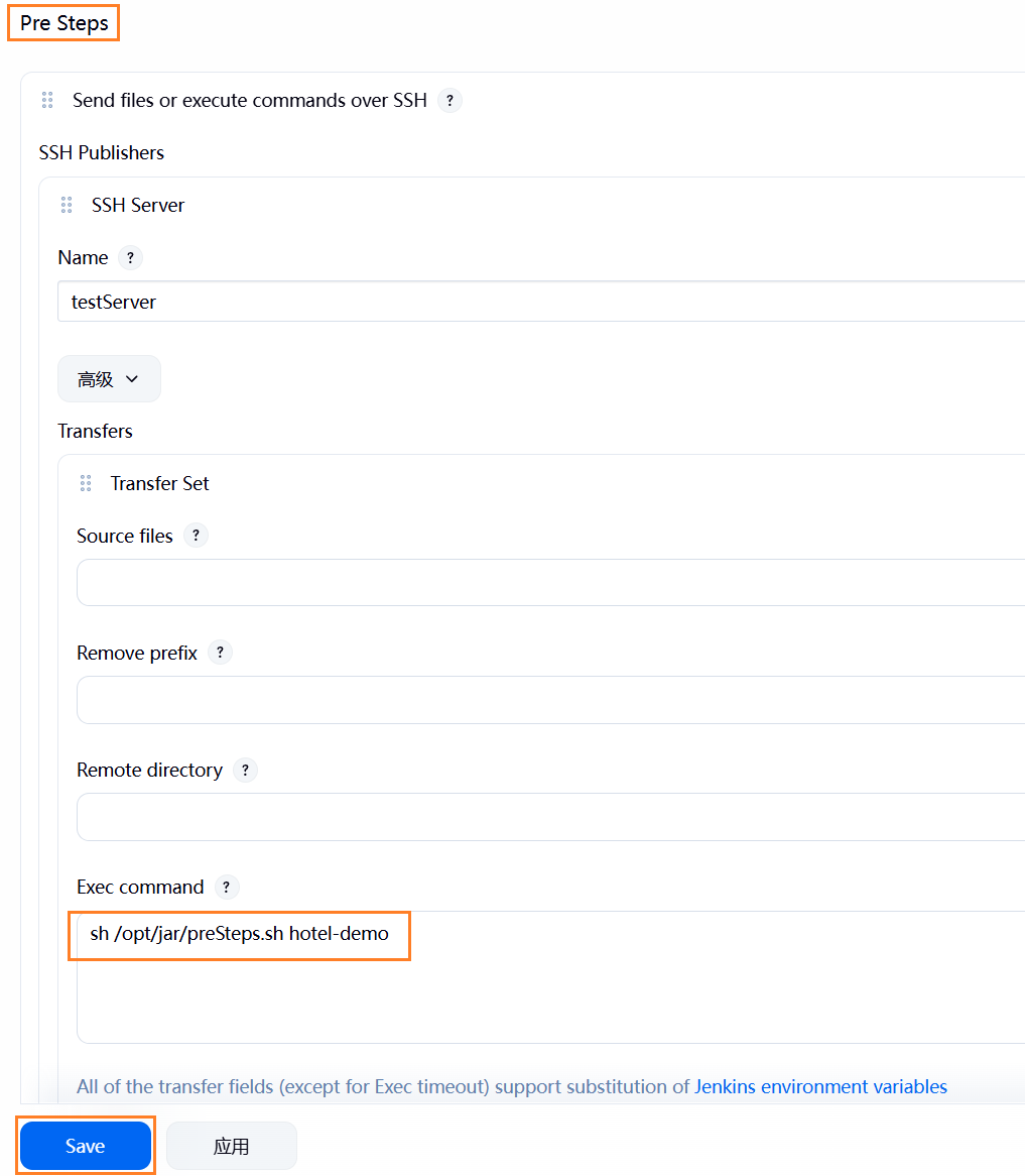 (1)如果按照上述配置,多次构建时由于之前的 jar 包还在运行,因此会出现由于端口号冲突而发布失败的问题。因此在自动化发布前需要杀死之前运行的进程,即进行配置构建前操作 (Pre Steps):