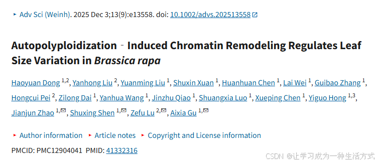 同源多倍化诱导的染色质重塑调控白菜叶片大小的变异