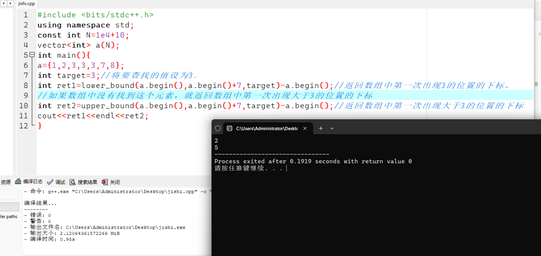 int ret2=upper_bound(a.begin(),a.begin()+7,target)-a.begin();//返回数组中第一次出现大于3的位置的下标