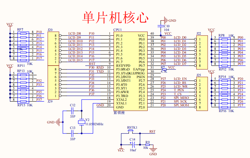 - 内部集成 MAX810 专用复位电路(HD 版本和 90C 版本才有):外部晶体20M 以下时,可省外部复位电路,复位脚可直接接地。