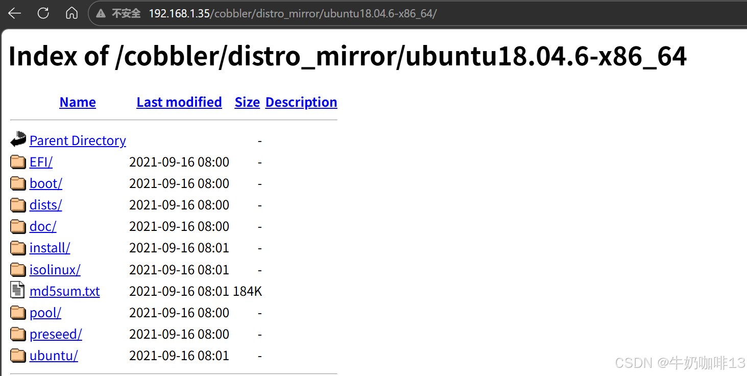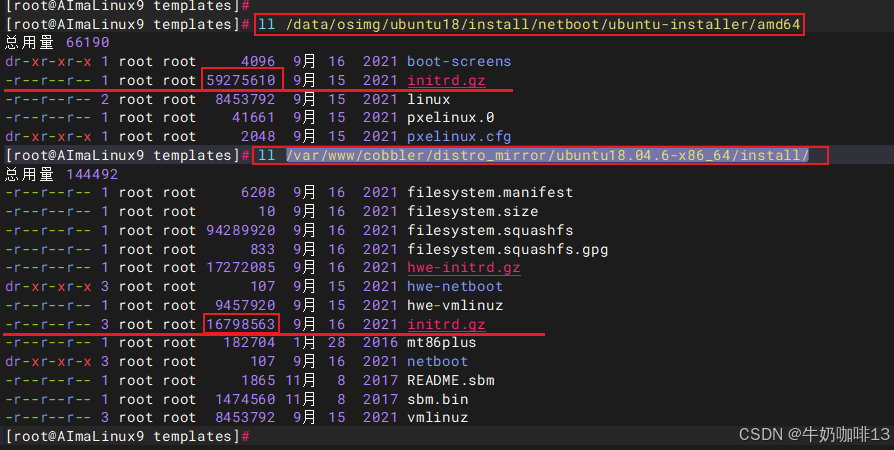 重点:Ubuntu18在cobbler导入后, ubuntu18-x86_64这个内核版本有个坑(即:cobbler默认加载的引导文件是iso安装介质中install目录下的initrd.gz文件,而此文件是基于光盘引导的,在网络安装的时候会提示光盘介质无法挂载的错误提示,因为cobbler是网络安装,因此,要替换这个文件,替换命令如下: