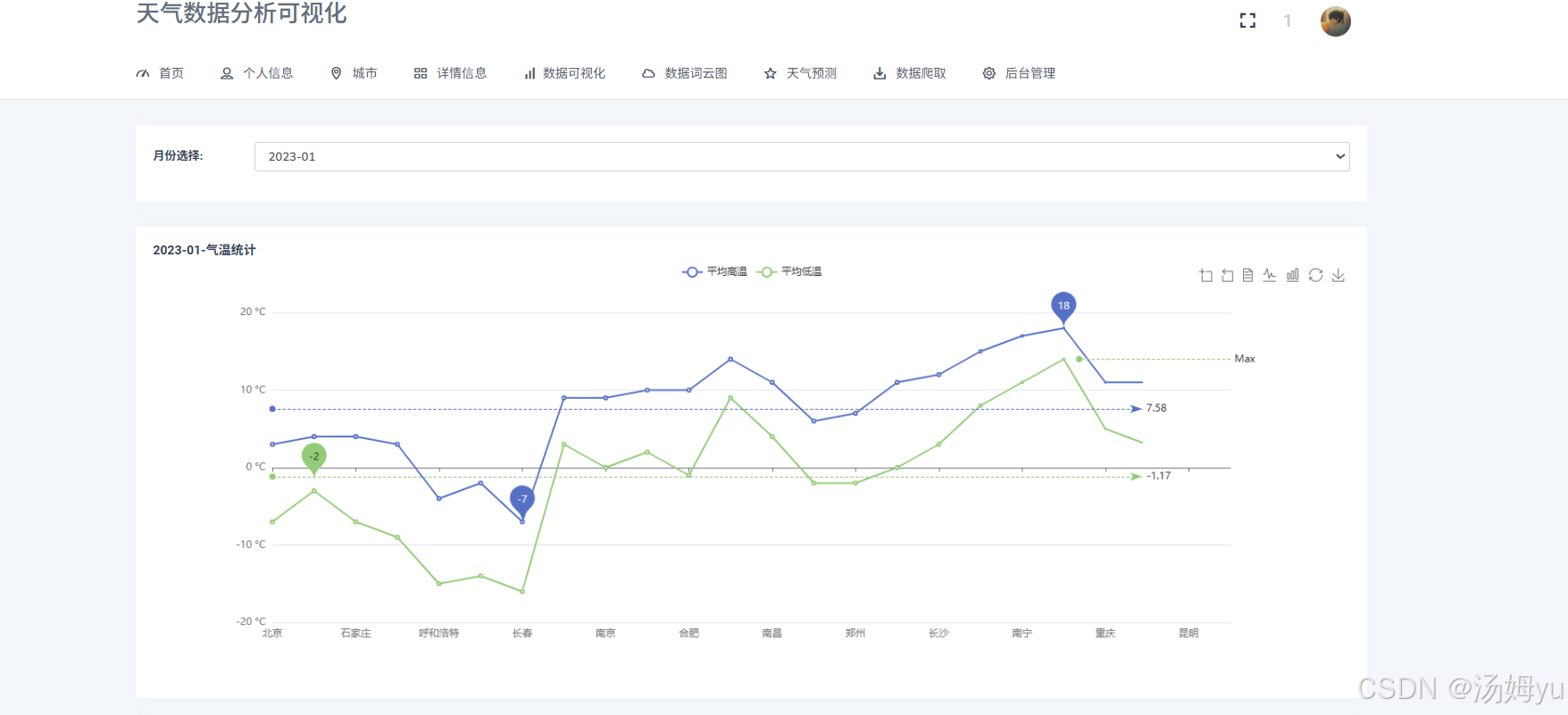 天气与人类生产生活息息相关,准确的天气信息对农业生产、交通运输、城市管理、灾害预警等领域具有重要意义。随着物联网和传感器技术的发展,气象观测站点数量大幅增加,天气数据呈现出海量、多源、异构的特点。传统的气象数据处理方式主要依赖人工分析和简单的统计方法,难以充分挖掘数据中蕴含的规律和价值。近年来,大数据技术和人工智能算法的快速发展为气象数据分析带来了新的机遇。通过网络爬虫技术可以自动化采集互联网上公开的历史天气数据,机器学习算法能够从海量数据中学习天气变化规律并进行预测,数据可视化技术则可以将复杂的气象数据以直观的图表形式呈现给用户。这些技术的融合应用,为构建智能化的天气数据分析系统提供了技术基础。当前,虽然市面上存在一些天气查询网站和应用,但大多只提供简单的天气查询功能,缺乏对历史数据的深度分析和可视化展示,也缺少基于机器学习的智能预测功能。因此,开发一套集数据采集、存储、分析、预测和可视化于一体的综合性天气数据分析平台具有重要的实用价值和研究意义。