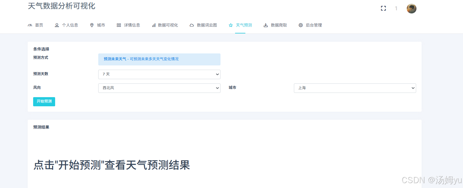 本课题旨在开发一套基于Django框架的天气数据分析可视化系统,实现以下核心目标:构建自动化的天气数据采集机制,支持全国主要城市历史天气数据的批量爬取;设计高效的数据存储方案,确保海量天气数据的可靠存储和快速查询;开发基于随机森林算法的天气预测模型,实现对未来天气状况的智能预测;提供多维度的数据分析功能,包括温度趋势分析、空气质量统计、风向分布分析等;实现交互式的数据可视化展示,通过图表直观呈现天气数据的时空分布特征。通过系统的开发,掌握Web应用开发、数据爬取、机器学习、数据可视化等关键技术,提升综合运用多种技术解决实际问题的能力。同时,系统的成功实施将为气象数据分析提供一套完整的技术解决方案,具有良好的应用推广价值。