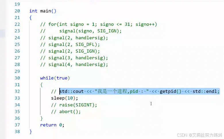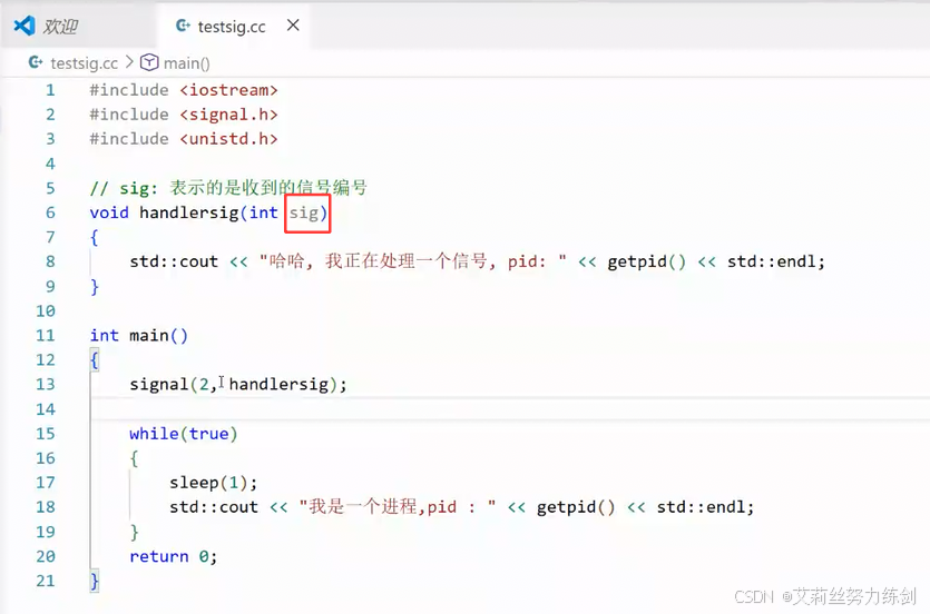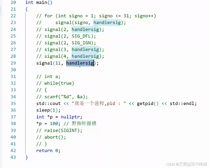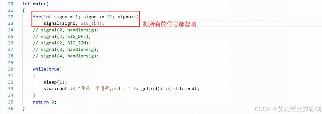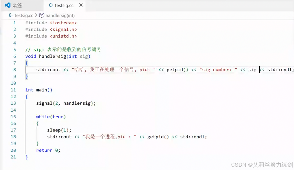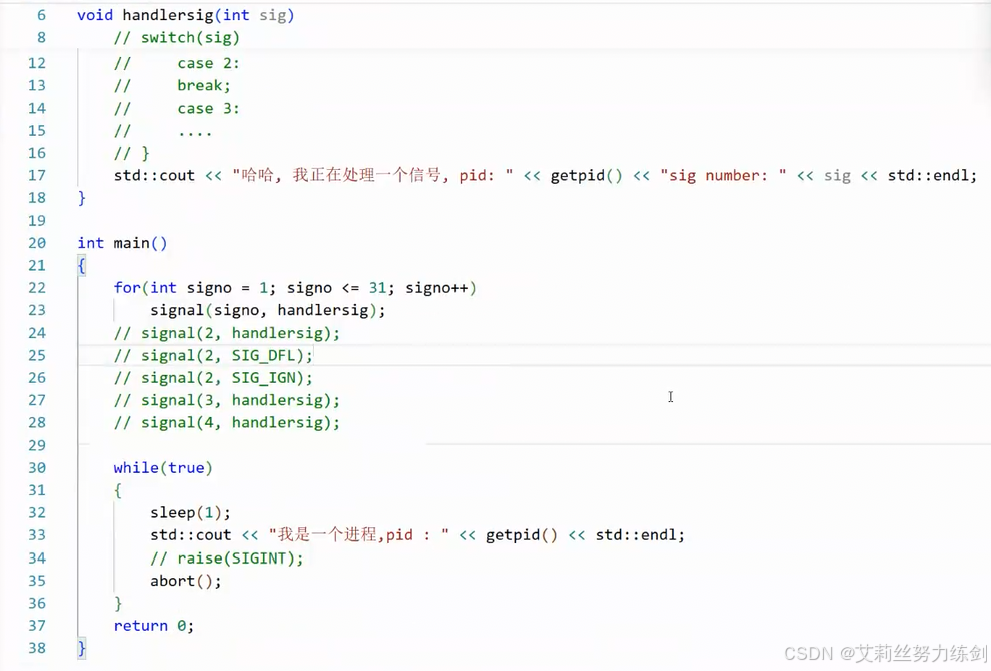 一定要写在handlersig函数里: