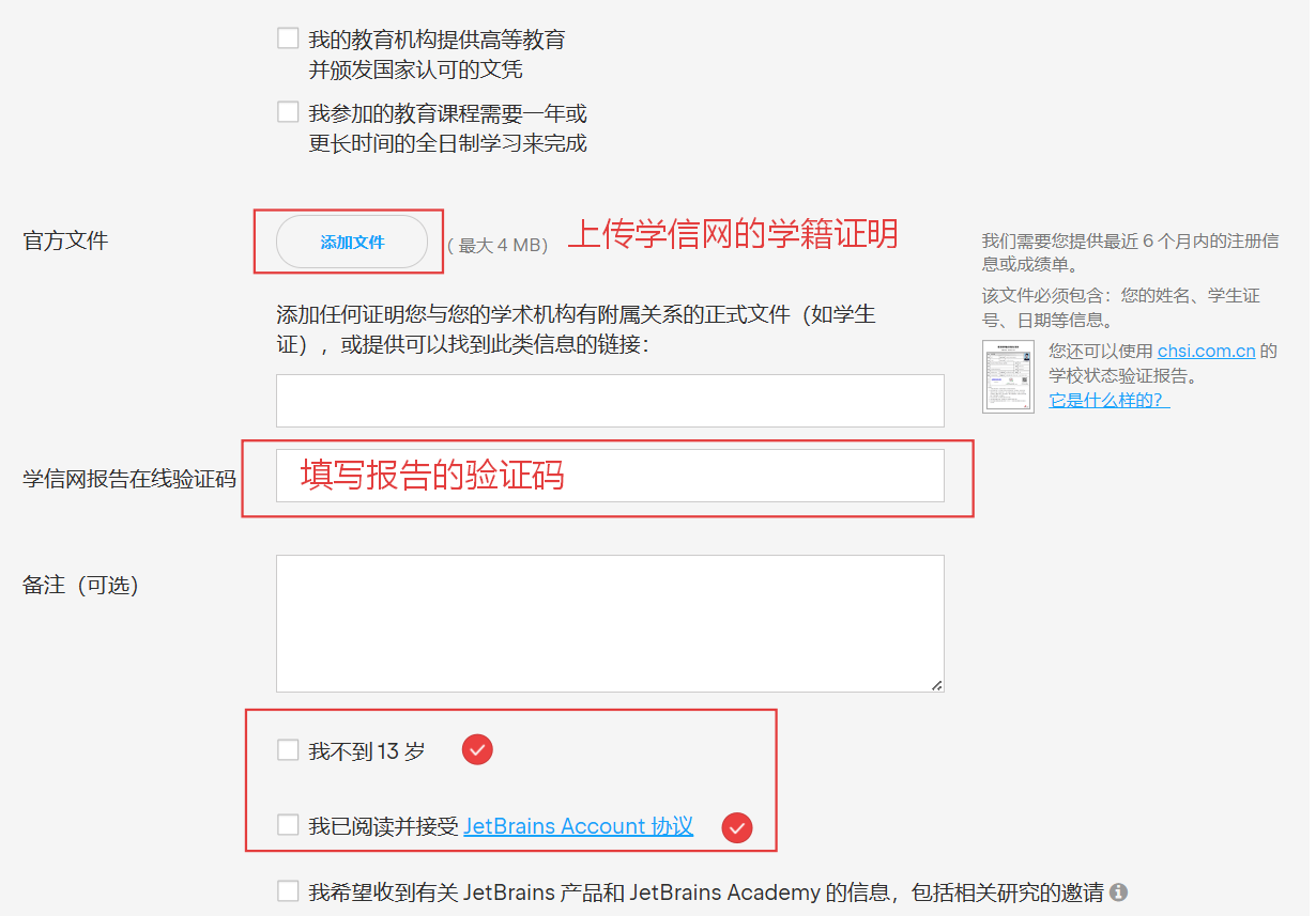 注意:文件需包含你的姓名、学号、学籍有效期等完整信息,且为近 6 个月内的有效文件,文件大小不超过 4MB。