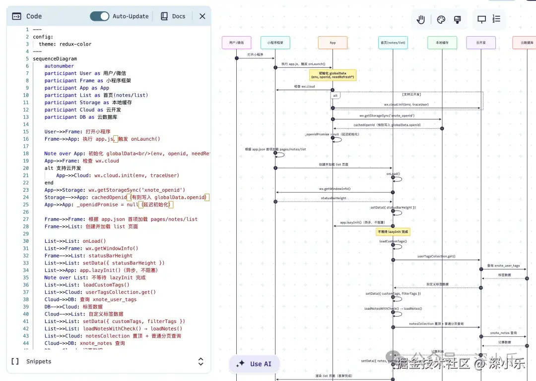 PS:Mermaid 是一个广泛使用的开源项目,它的语法,在大模型的的训练数据里本来就有,所以一般的 Agent,天然就"会写" Mermaid 代码。现在很多 Agent,本身也内置了 Mermaid 的渲染,在对话框中直接就能看到效果(如 Cursor)。