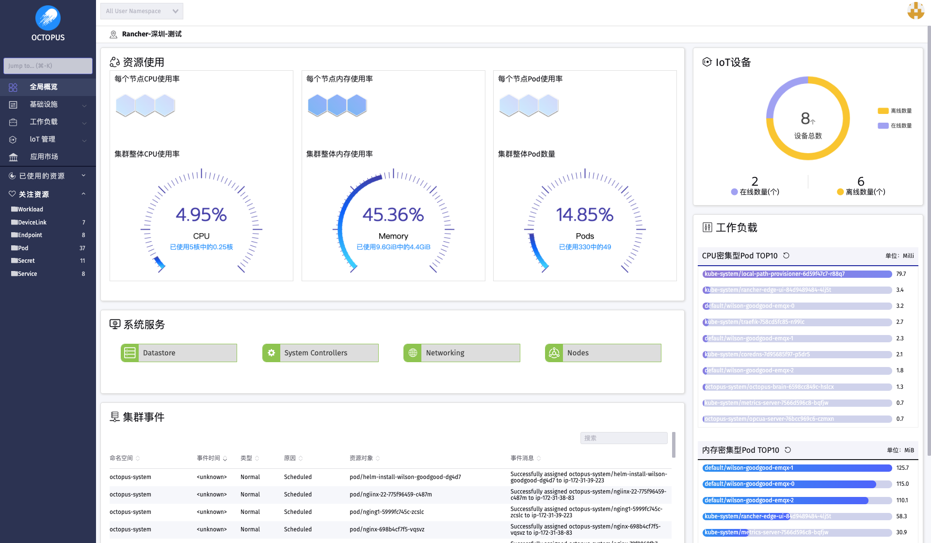 Rancher 可与 K3s(轻量级 K8s 发行版)深度集成,特别适合资源受限的边缘计算场景 。其架构设计更注重灵活性与低开销。 - △ KubeSphere 功能全面但也相对"厚重",更适合资源充足的中心化环境。