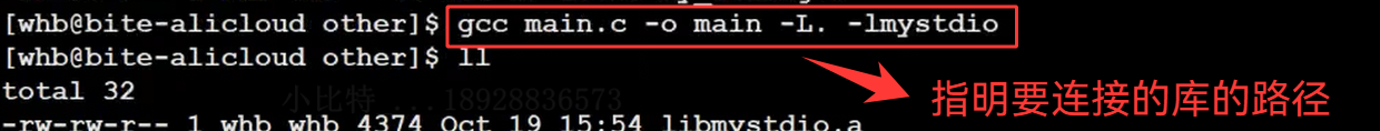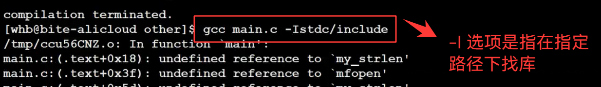 注意:库的格式是libmystdio.a,但是库的名字是去掉lib和.a之后的内容,而我们现在写的-l是link连接的缩写,可以引入指定名称的第三方库