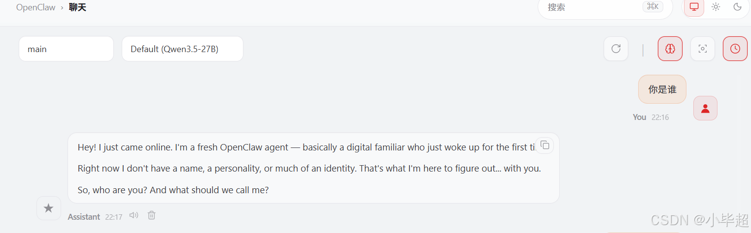 在 OpenClaw 提供的 UI 页面上,可直接在聊天中,与AI交互: