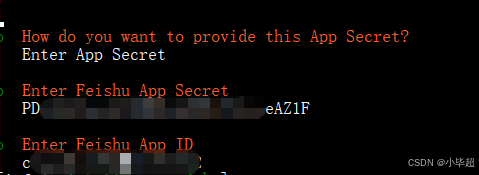 填写上面飞书平台上提供的 App ID 和 App Secret:
