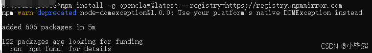 npm install -g openclaw@latest --registry=https://registry.npmmirror.com