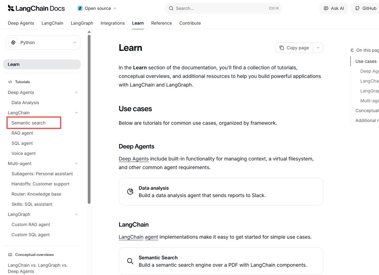 既然是学习langchain,那么最好的学习路径就是按照官方文档上开始学,后续文章也会按照这里学习下去。