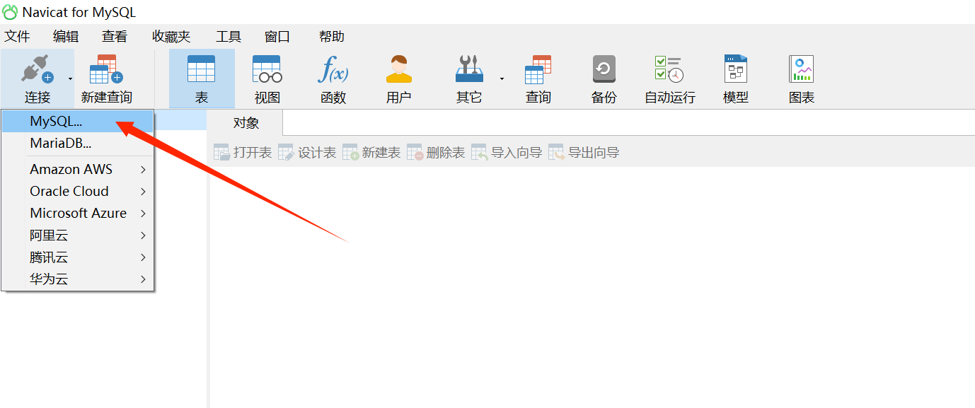 - 在navicat for mysql中先创建一个MySQL的连接,