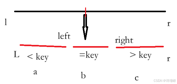 设 a = left - l + 1 (小于 key 的元素个数) 设 b = right - left - 1 (等于 key 的元素个数)