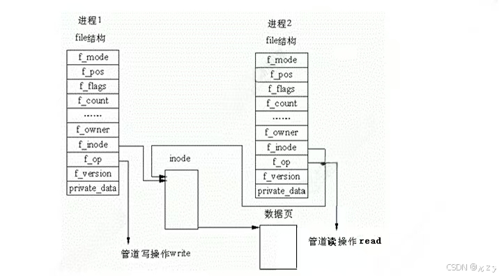 当进程调用pipe系统接口时,内核会在内存中创建一个管道对象,这个管道对象本质上是一个循环缓冲区,由多个数据页组成,用于暂存写入的数据。对于管道两端的文件描述符,内核会为它们分别创建对应的file结构体,这两个file结构体通过private_data指针指向同一个管道对象,当进程调用write向管道写入数据时,内核会通过file结构体找到对应的管道对象,将数据拷贝到管道的环形缓冲区中,当进程调用read从管道读取数据时,内核将从管道缓冲区中取出数据拷贝到用户空间。