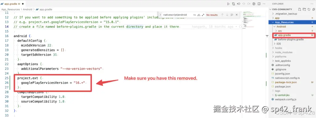 如果你使用的是 NativeScript 8.1+,并且使用的是 @nativescript/geolocation 插件 8.1.0 版本,并且在某个地方意外设置了 googlePlayServicesVersion。来自此插件的最近更新可能会导致你的 Android 构建失败。