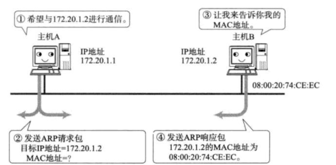 1.源主机发送ARP请求,询问"IP地址为...的主机的硬件地址是多少",并将这个请求广播到本地网段(以太网首部的硬件地址填FF:FF:FF:FF:FF:FF表示广播)