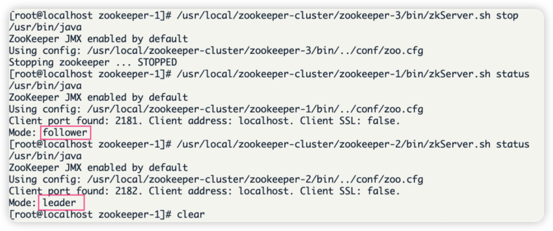 /usr/local/zookeeper-cluster/zookeeper-3/bin/zkServer.sh stop