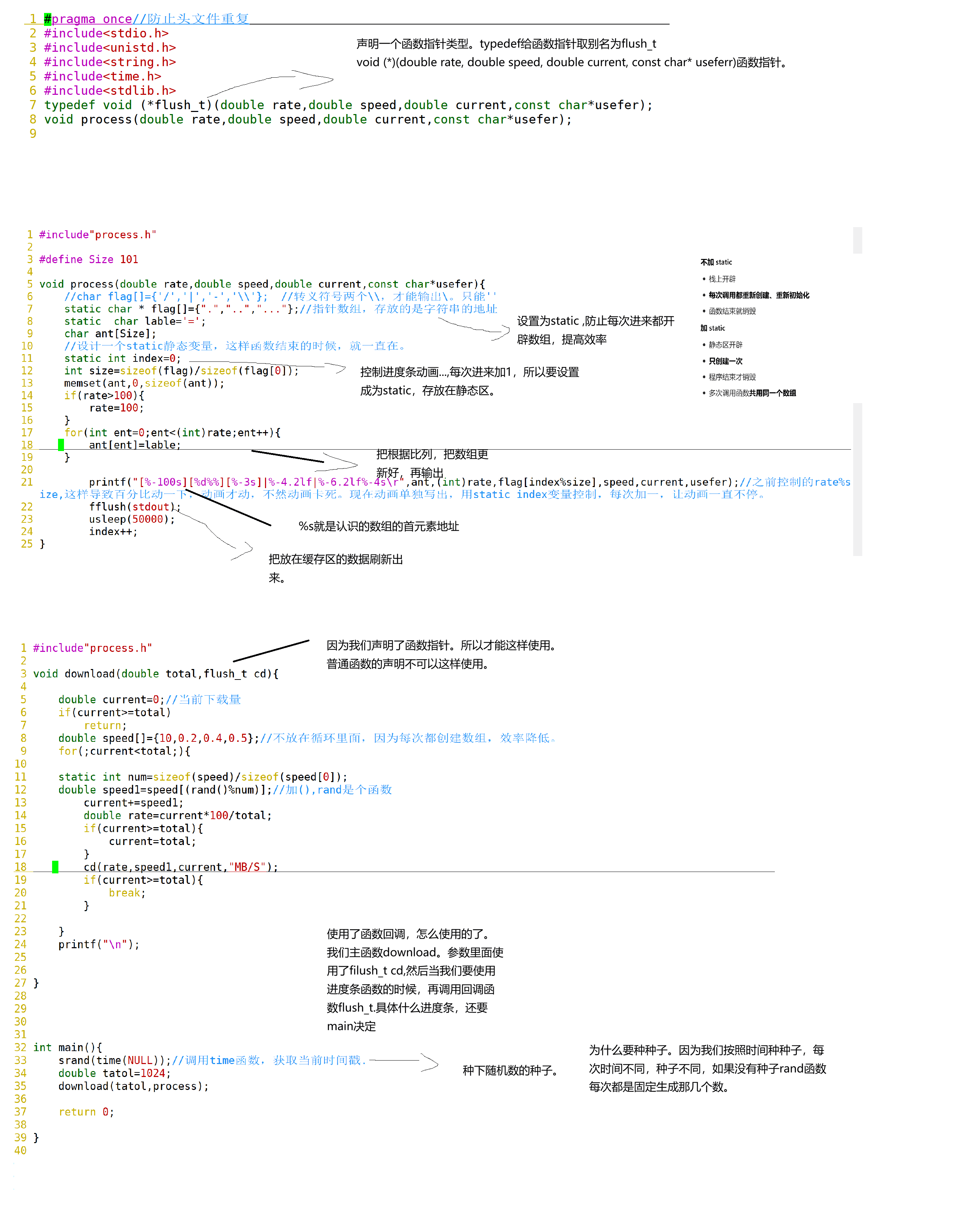 为什么回调函数耦合度低,因为我们使用回调函数,避免这个process函数进度条与download绑定了。如果我们想使用其他函数。只需要在main里面修改一下就可以了。如果不使用回调函数。我们需要修改download里面的process函数。耦合度高。