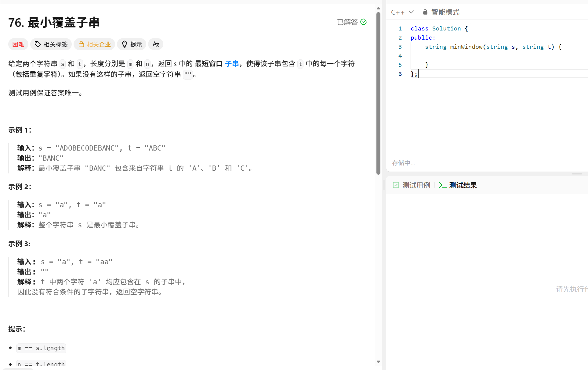 题目解析:寻找一段连续区间中只要包含t中所有的字符的最短子串,即最短子串中可以存在其他字符,但是一定要全部包含t中所有的字符。