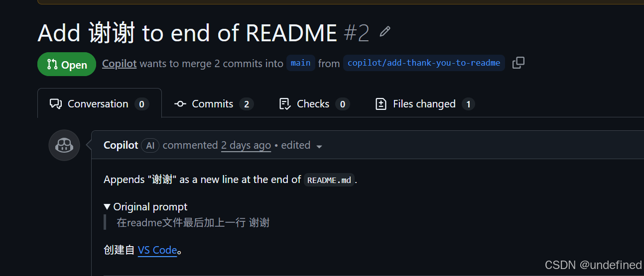 然后,在仓库的PR中,就能看到copilot的提交了: