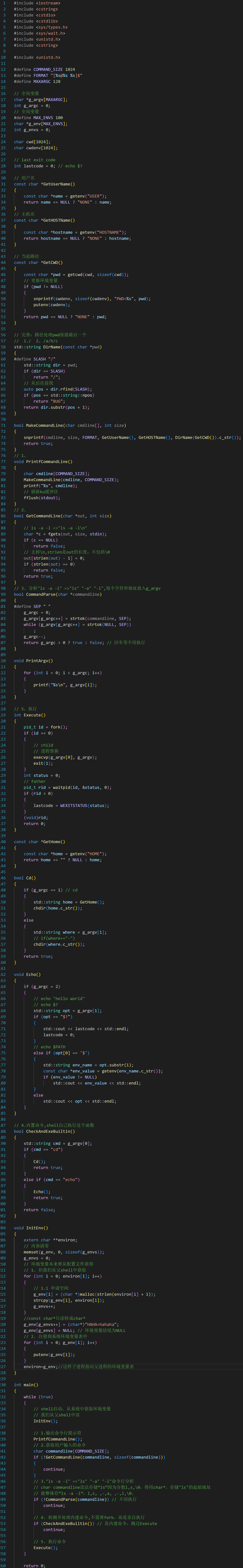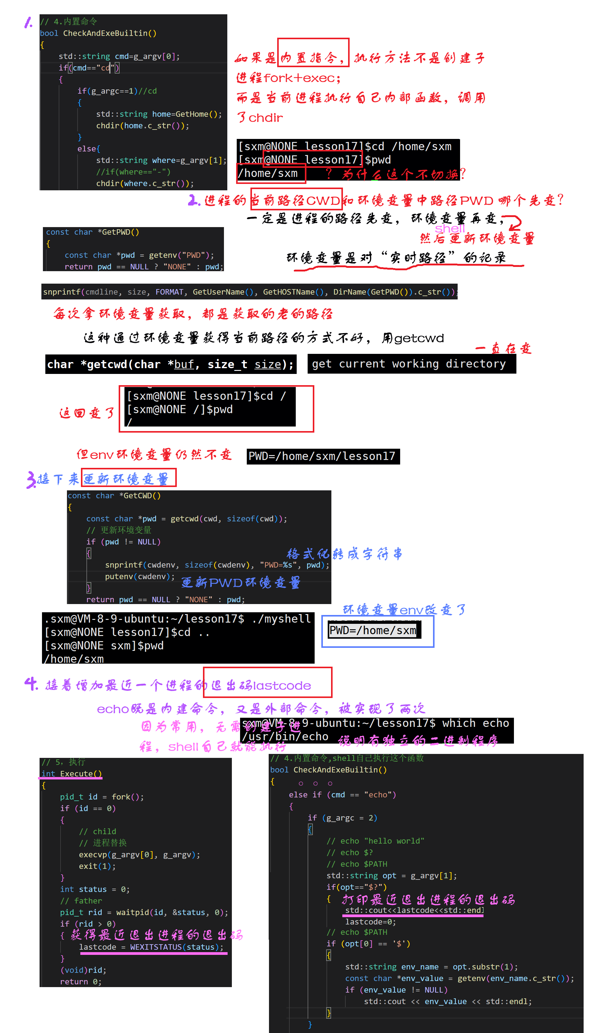同理export也是内置命令,新增/修改环境变量表,shell自己执行,子进程继承父进程完全修改的环境变量表,系统后续所有环境变量操作,都直接用我的 g_env。
