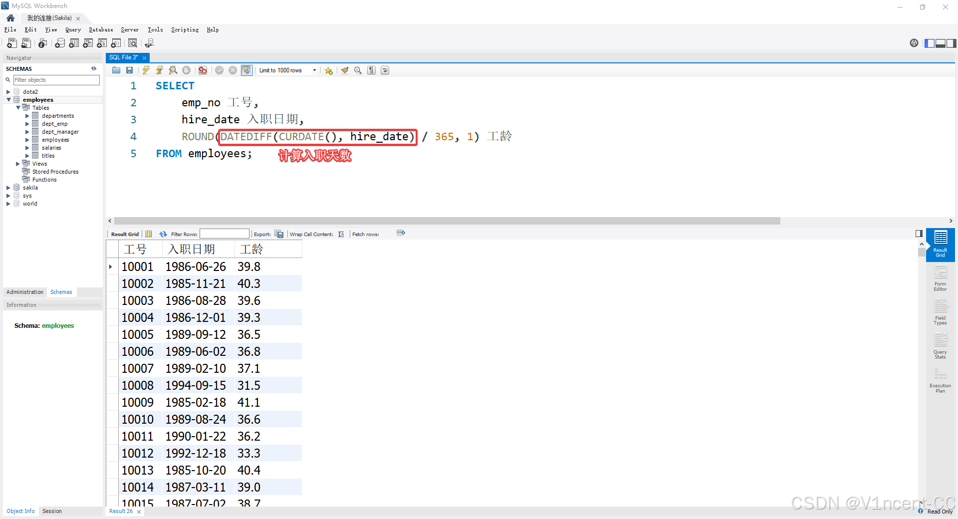 - [4.2 案例:计算工龄(DATEDIFF & ROUND)](#4.2 案例:计算工龄(DATEDIFF & ROUND))
