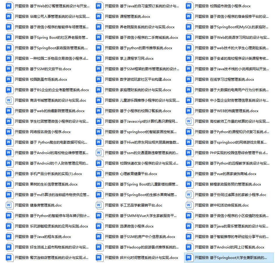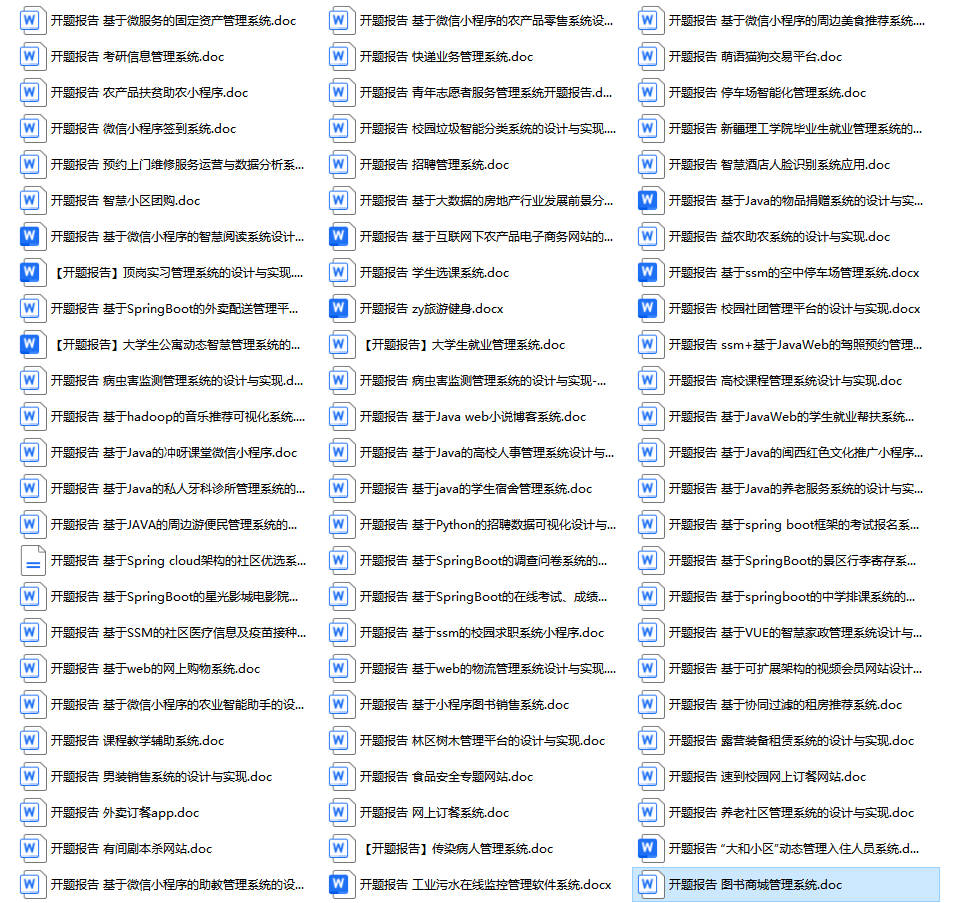 以上是某同学的毕业设计答辩的过程,如果你现在还没有参加答辩,还是开题阶段,已经选好了题目不知道怎么写开题报告,可以下面找找有没有自己符合自己题目的开题报告内容,列表中的开题报告都是往届真实的开题报告,可发送使用或参考。文末或底部来联xi可免费获取