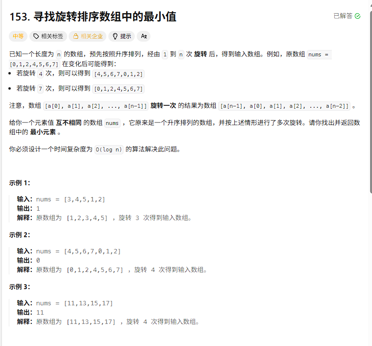 153. 寻找旋转排序数组中的最小值 - 力扣(LeetCode)