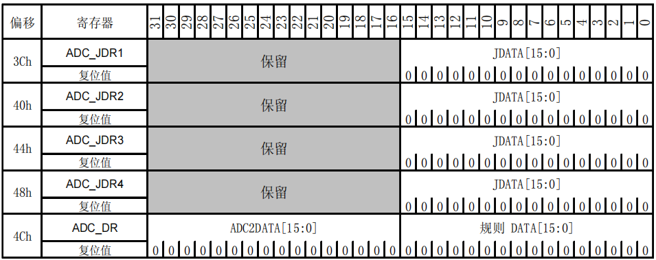 - [ 13、ADC 注入数据寄存器x (ADC_JDRx) (x= 1..4)](# 13、ADC 注入数据寄存器x (ADC_JDRx) (x= 1..4))