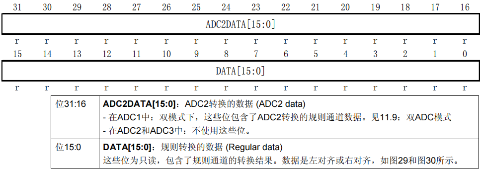 14、ADC规则数据寄存器(ADC_DR)