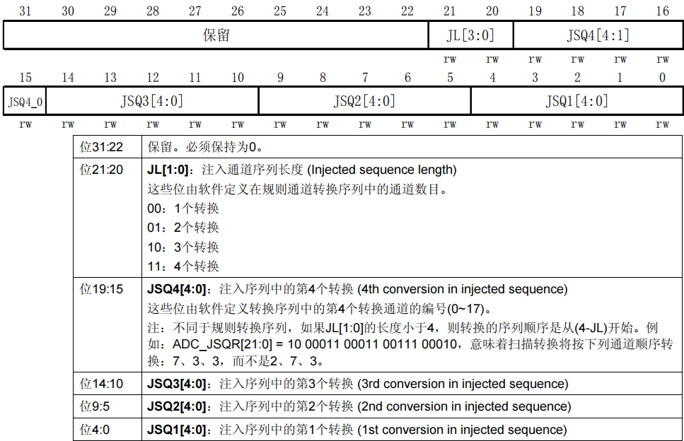 12、ADC注入序列寄存器(ADC_JSQR)