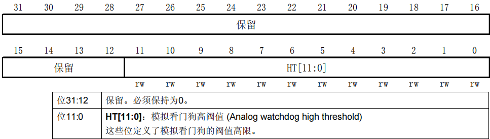 7、ADC看门狗高阀值寄存器(ADC_HTR)