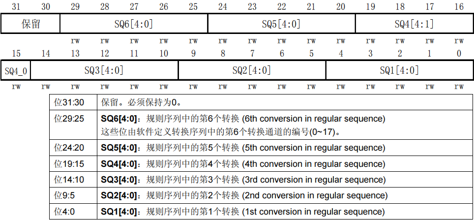 - [ 9、ADC规则序列寄存器 1(ADC_SQR1)](# 9、ADC规则序列寄存器 1(ADC_SQR1))