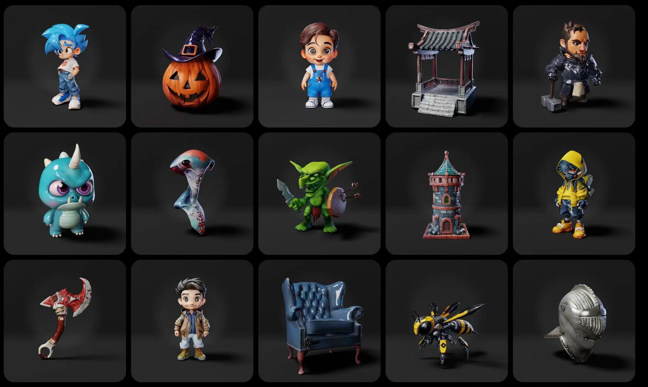 用户输入文本描述(如"卡通猫形象"),AI生成高精度3D模型;