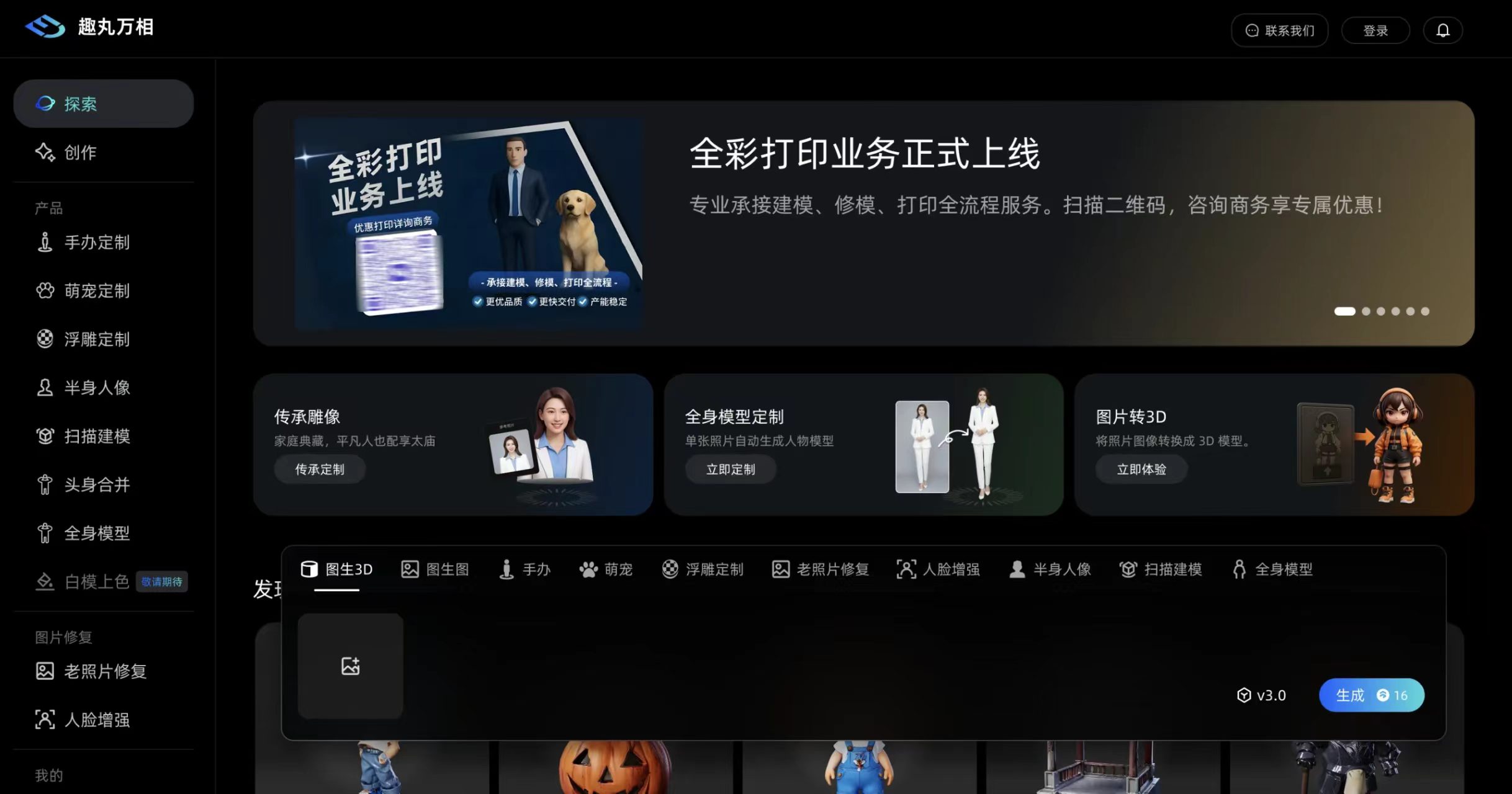 | 1 | 趣丸万相AI + 塞纳三维 | AI生成+全彩打印 | 消费级潮玩、手办 |