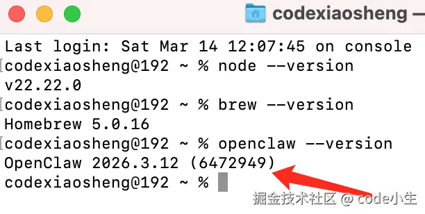 这里看到 Homebrew 和 Node.js 都已经安装成功,且能显示出版本号,这两是必须的前提条件。