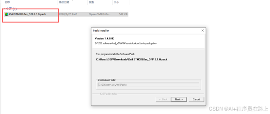 找到下载好的 Keil.STM32L0xx_DFP.3.1.0.pack 文件,直接双击 它,安装向导将自动启动。