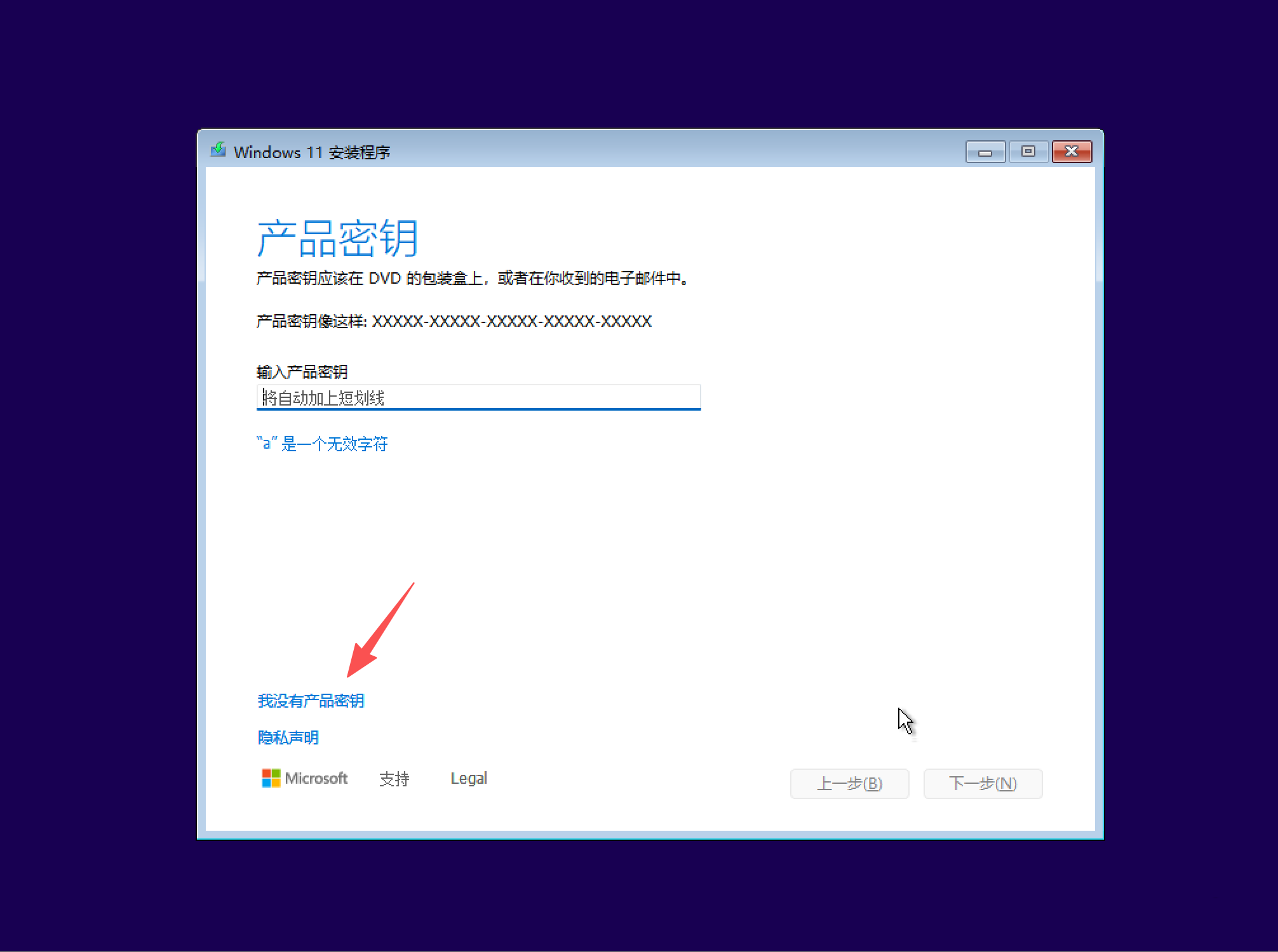 - 如果有产品密钥就输入,如果没有点击"我没有产品密钥"。